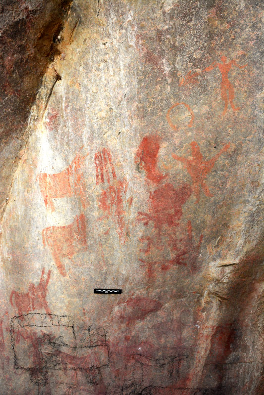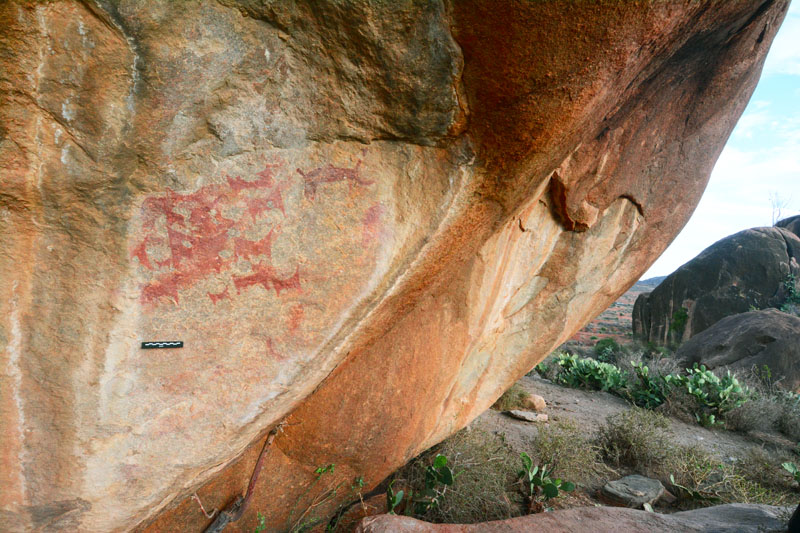 Ethiopia is the biggest country of the Horn of Africa, a very diverse country which has traditionally been a melting pot of cultures, religions and ethnicities, acting as a crossroads between the Nile valley region, the Red Sea and East Africa. Most rock art is located in the southern part of the country, although smaller concentrations have been documented near the borders with Eritrea, Sudan and Kenya. Ethiopian rock art shows strong similarities with other countries in the Horn of Africa as well as Sudan and mostly consists of cow depictions dated from the 3rd millennium onwards, although other animals, anthropomorphic figures and geometric symbols are also fairly common.